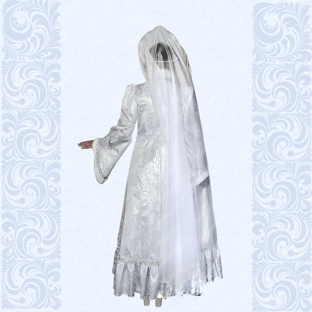 В состав костюма входит высокий кокошник ( четыре варианта на выбор). К кокошнику можно дозаказать фату из белой прозрачной органзы средней длины или длиннную (+300 или 600 руб).