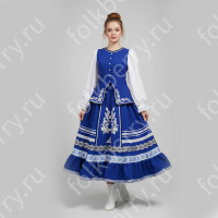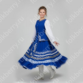 Косоворотка украшена жаккардовой тесьмой и вьюнком, контрастирующей по цвету с основной тканью. В комплекте с изделием идет кушак.