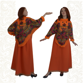 • украшенная искусственным мехом по манжетам и по горловине накидка, выполнена из платочной ткани;