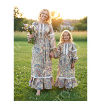 Фасон платья очень удачный и хорошо подходит всем покупательницам: горловину можно регулировать, рукав реглан хорош для всех типов фигур, удлиненный и немного расклешенный силуэт. немного завышенная талия. Длинный декорированный пояс в комплекте. Дополнительный факт - фасон платья "Берегиня" хорошо подходит крупным и полным женщинам.