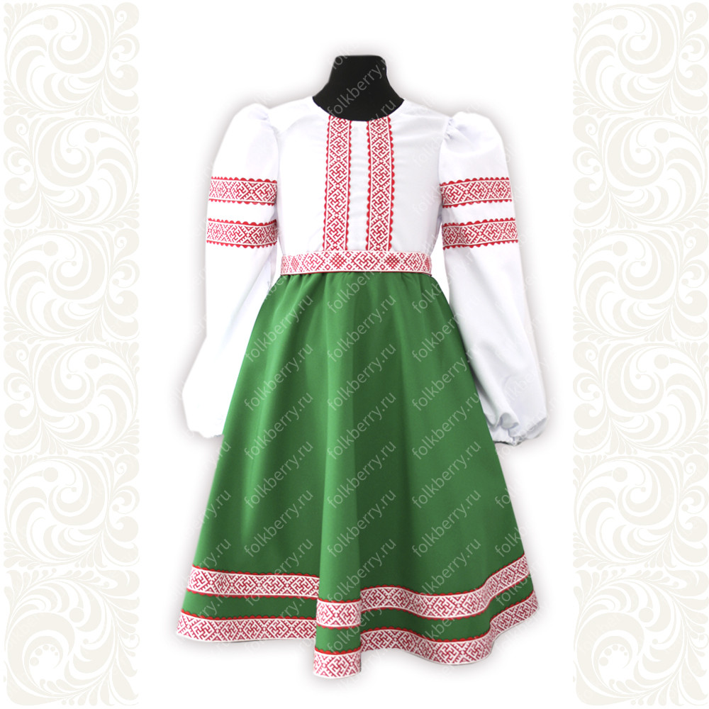 Платье «Дмитра» - современное прочтение славянских традиций. Платье четкого силуэта, чуть ниже колена, чистого яркого цвета. Платье отрезное по талии, длинный рукав-реглан, регулируемая горловина, юбка "почти солнце", с поясом. Для платья подобран эффектный декор -  солярные славянские знаки.  Платье сшито из габардина, ткани, которая не блестит и не мнется, всегда выглядит аккуратно, ярко, празднично, романтично.