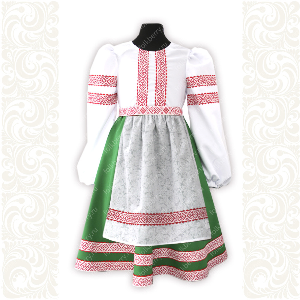 Фасон: Юбка – почти солнце, длиной чуть ниже колена, завышенная талия, рукав реглан, регулируемая горловина, пояс в комплекте.