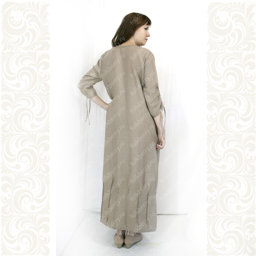Платье "Домна" в стиле "бохо" выполнено из умягченного льна, благородного цвета "капучино".