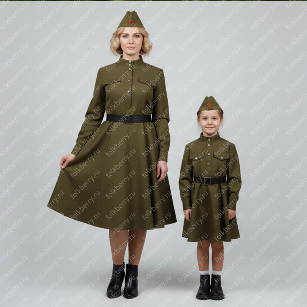 Платье Солдатка, габардин, хаки