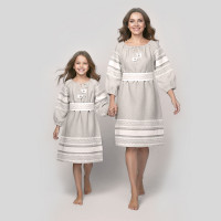 Эта традиционная женская рубаха ( длинная туника с поликами под мышками, с разрезами по бокам, с поясом) из белого льна декорирована по низу рукава, подолу и на груди широкой жаккардовой тесьмой со славянскими обережными символами красного цвета на белом фоне.