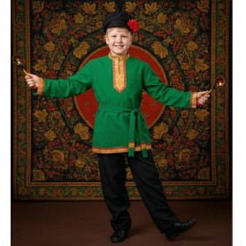 Русская народная рубаха (косоворотка) с кушаком. Изготовлена из хлопка, декорирована жаккардовой тесьмой. Яркий узнаваемый во всем мире рисунок "хохлома" и насыщенные цвета делают Косоворотку праздничной.