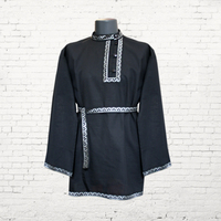 Льняная мужская рубаха «Истоки» с коротким втачным рукавом, прекрасно подойдет для проведения традиционных славянских праздников и выступлений. По вороту, низу изделия, рукавам расположен декор из жаккардовой тесьмы с обережным рисунком. Модель комплектуется кушаком (поясом) из ткани с тесьмой.