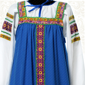 Костюм «Народный» состоит из блузы и сарафана, и выполнен в соответствии со славянскими историческими традициями.