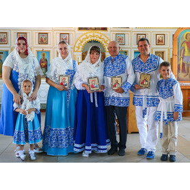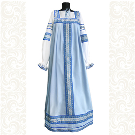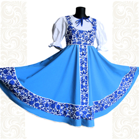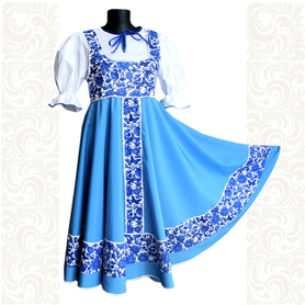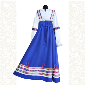 Сарафан с блузой Народный, габардин и хлопок, синий
