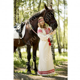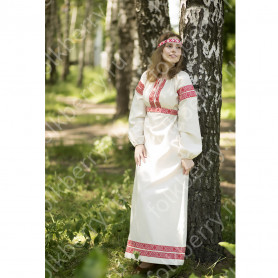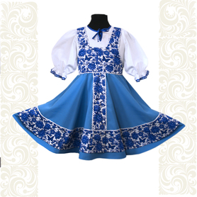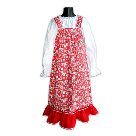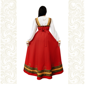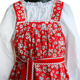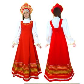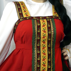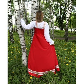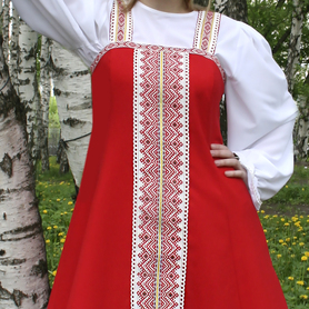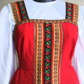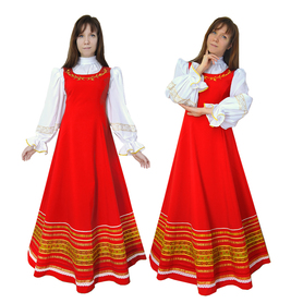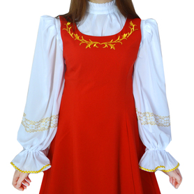 Выполненный в фольклорном стиле костюм «Народный» – это возможность создать неповторимый образ русской красавицы. Комплект состоит из сарафана и блузы, фасон соответствует традиционному историческому костюму.