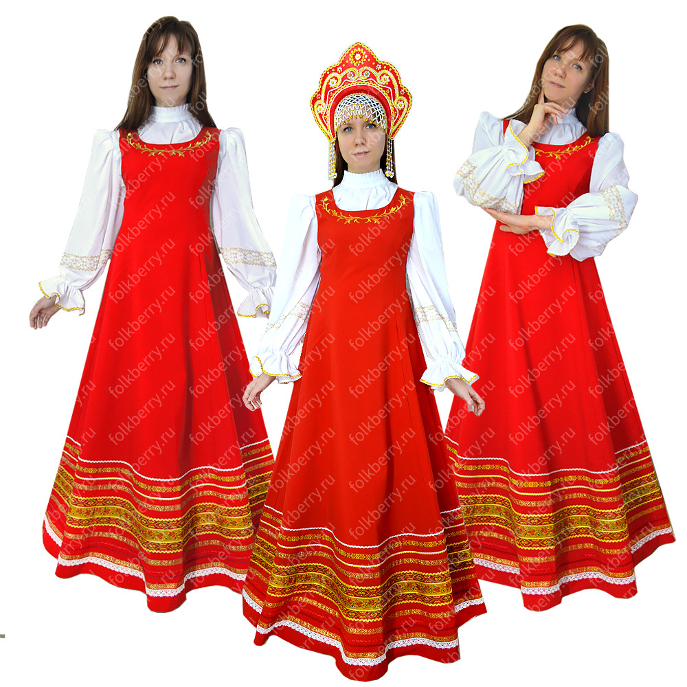 Праздничный и яркий сарафан с блузой «Жар птица» предназначен для выступлений на концертах, для театральных постановок, и участия в традиционных славянских праздниках и мероприятиях.